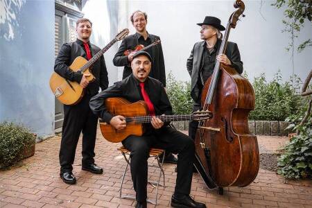 Das Gypsy Jazz Quartett »Bistro Manouche«, 2019 von Grigor Shagoyan gegründet, spielt neben der Musik der Jazzlegende Django Reinhardt auch eigene Interpretationen, die zum Träumen einladen. Beeinflusst von den Musikgenres Jazz, Fusion und Funk klingen bekannte Themen neu, virtuos und leidenschaftlich. Bandleader und Bassbariton Grigor Shagoyan jongliert zwischen Klassik und Chanson und bereichert die Instrumente des Quartetts mit seinem sonoren Gesang auf witzige und charmante Weise. Für Besucher der Lounge-Konzerte kein Geheimtipp mehr!