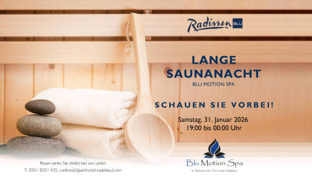 wir möchten gemeinsam mit Ihnen entSPAnnt ins Jahr 2026 starten und freuen uns darauf, Sie zur Saunanacht am 31. Januar 2026 von 19:00 bis 24:00 Uhr willkommen zu heißen.
