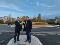 Der gestaltete Kreisverkehr an der neuen Straßenüberführung "Nach der Schiffsmühle" an der Stadtgrenze wurde heute eingeweiht.