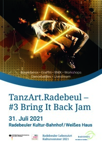 Am 31. Juli findet, im Rahmen der „Bring It Back Jam“ der Breakdance-Gruppe THE SAXONZ, die TanzArt.Radebeul statt. Vor dem Radebeuler Kultur-Bahnhof und am Weißen Haus laden Workshops, Tanzvorführungen und Live-Musik zum Ausprobieren und Mittanzen ein.