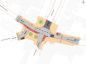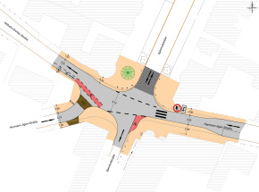 Die Unterschiede zwischen den beiden Varianten bestanden hier hauptsächlich in der Führung des Verkehrs aus der westlichen Hermann-Ilgen-Straße heraus.