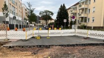 Der Einmündungsbereich der Freiligrathstraße ist seit der vergangenen Woche aufgrund der Medienneuverlegung gesperrt. Die vorbereitenden Arbeiten zur Sanierung des Trafogebäudes an der August-Bebel-Straße haben begonnen.