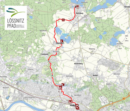 The Lößnitz Trail is accessible throughout and signposted in both directions. Information posts along the route explain the special features of the landscape and the sights.