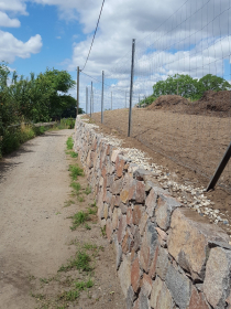 Działanie budowlane: Zabezpieczenie i nowa konstrukcja 70 metrów kwadratowych suchego kamiennego muru