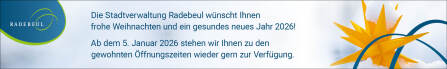 An diesem Freitag, den 19. Dezember 2025 findet der letzte Wochenmarkt in diesem Jahr in Radebeul-Ost auf der Hauptstraße statt. Im Neuen Jahr startet der Wochenmarkt am Freitag, den 9. Januar... Weiterlesen